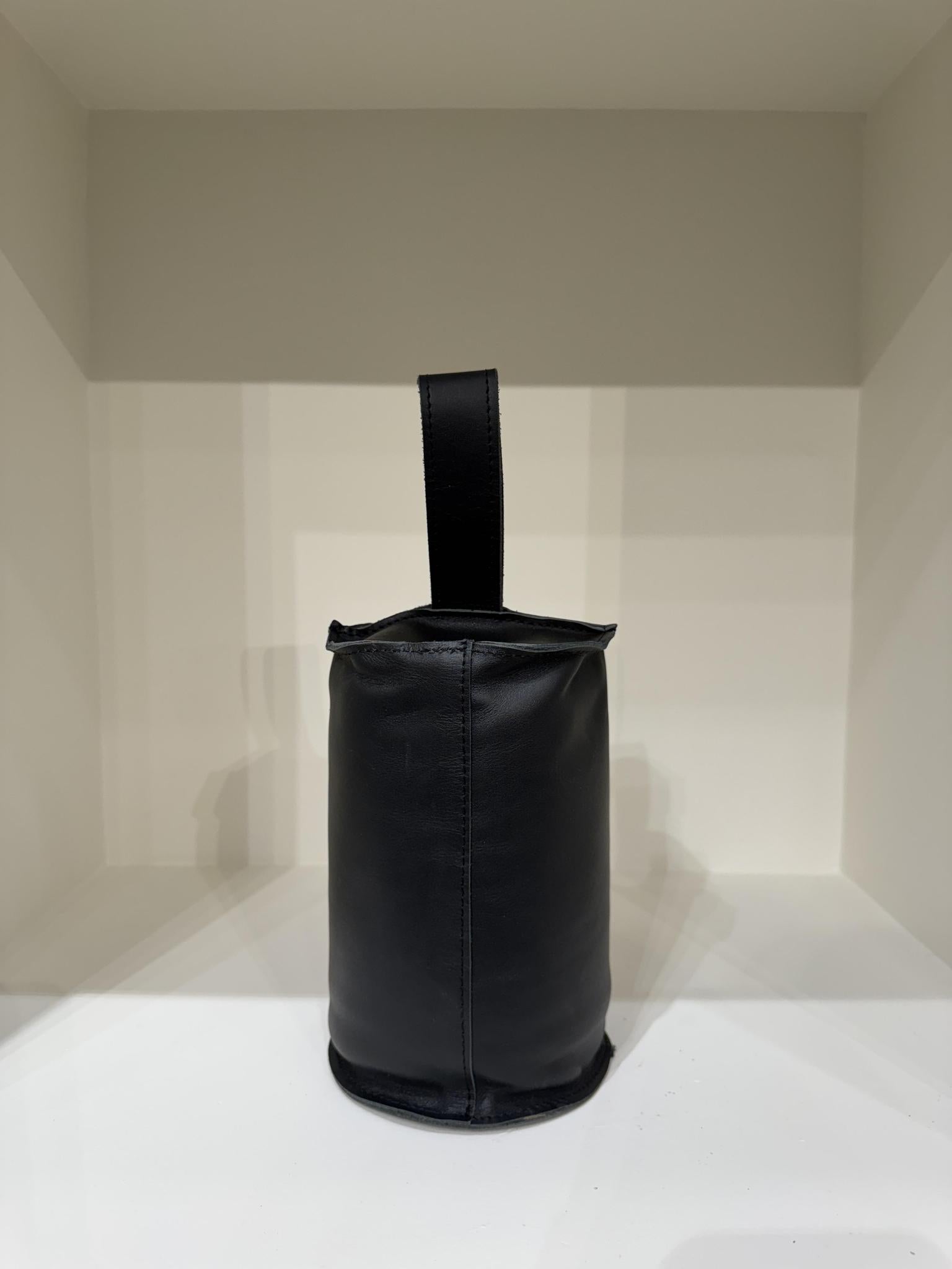 Black leather door stopper with handle