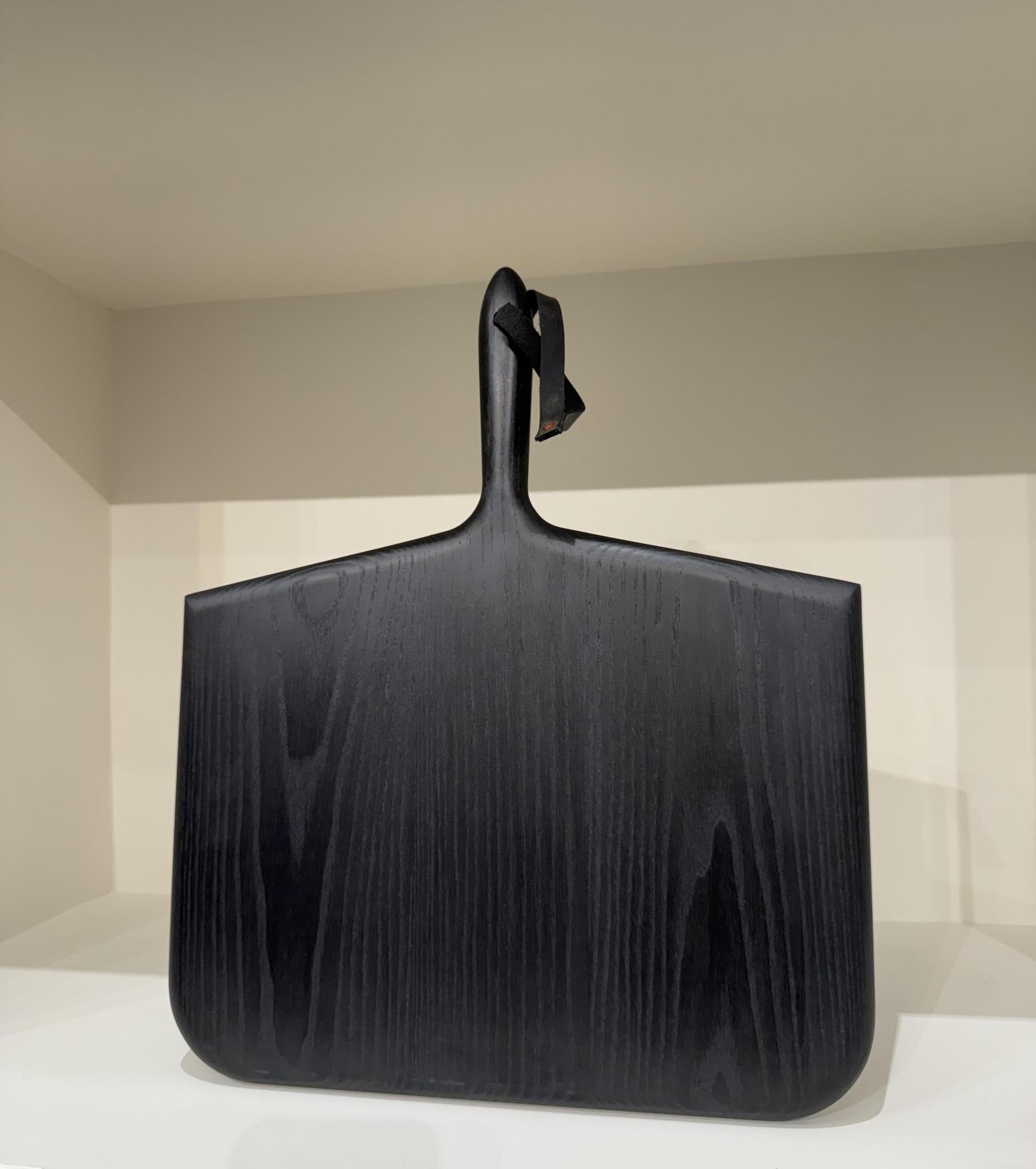 Premium, high-quality cutting and serving board, ebonized ash wood with leather strap