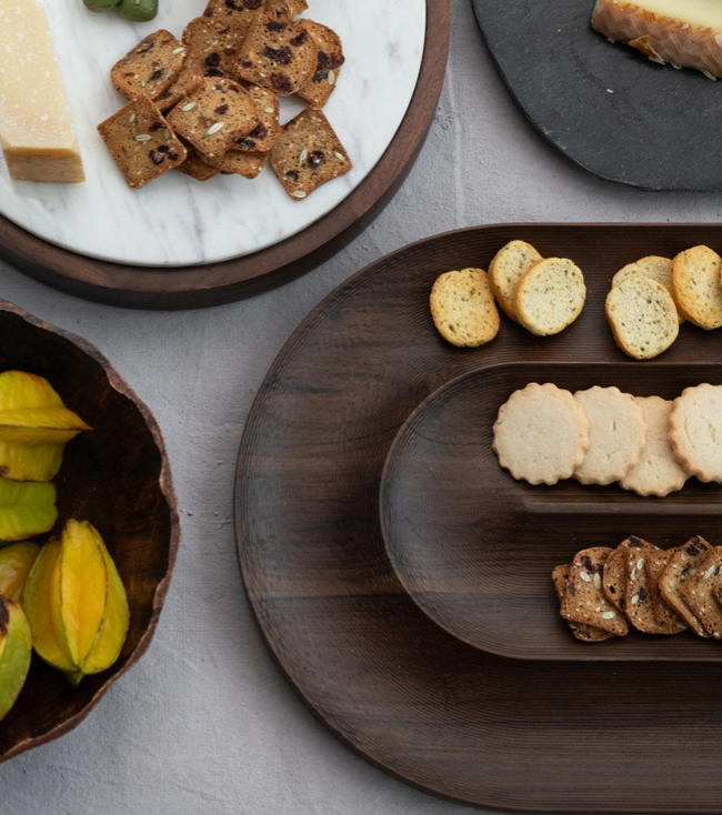 Mango wood oval serving dish, walnut finish, great for crackers and chips