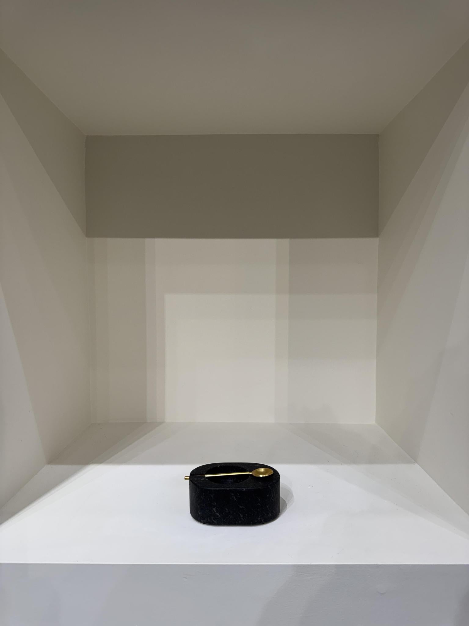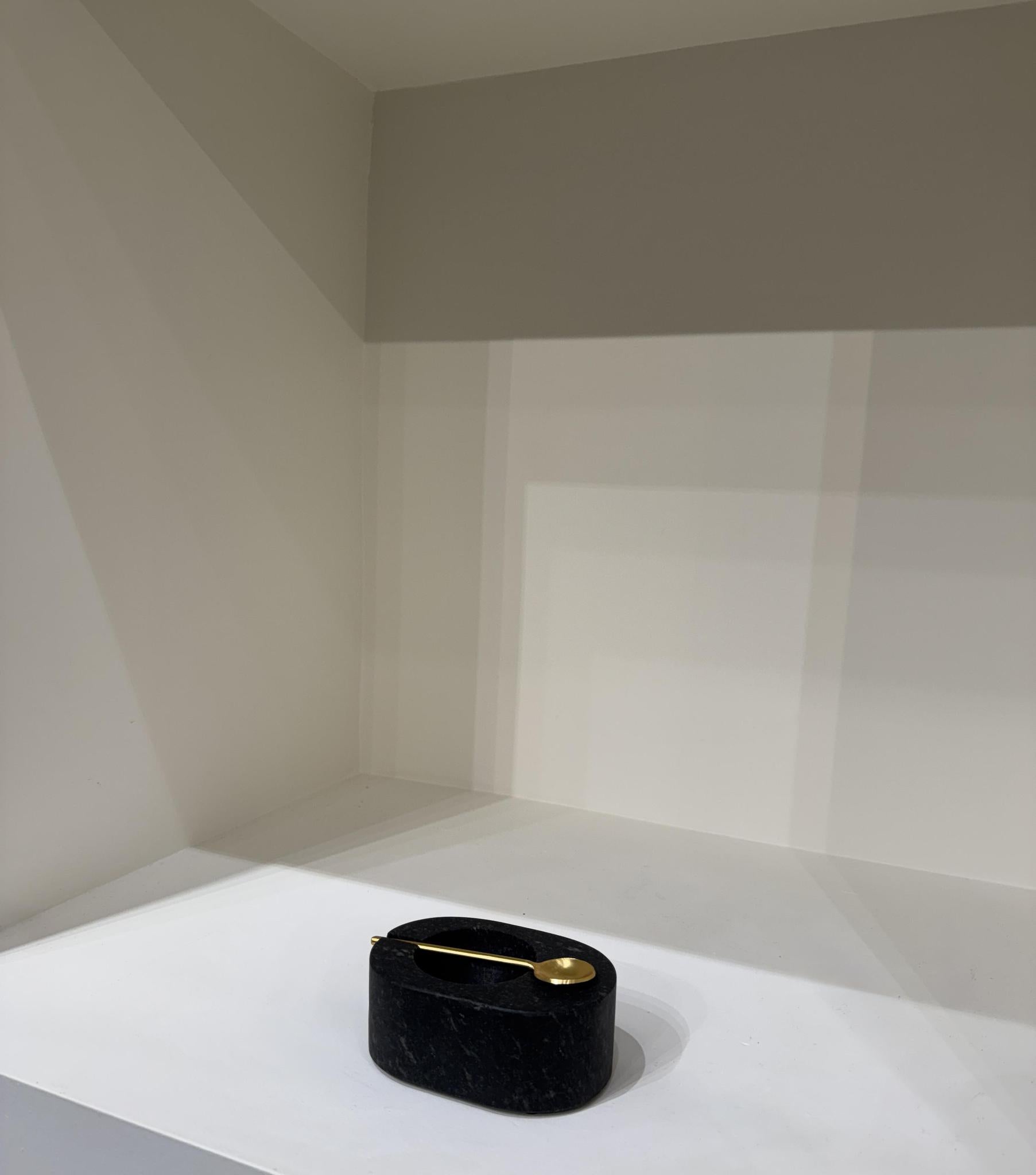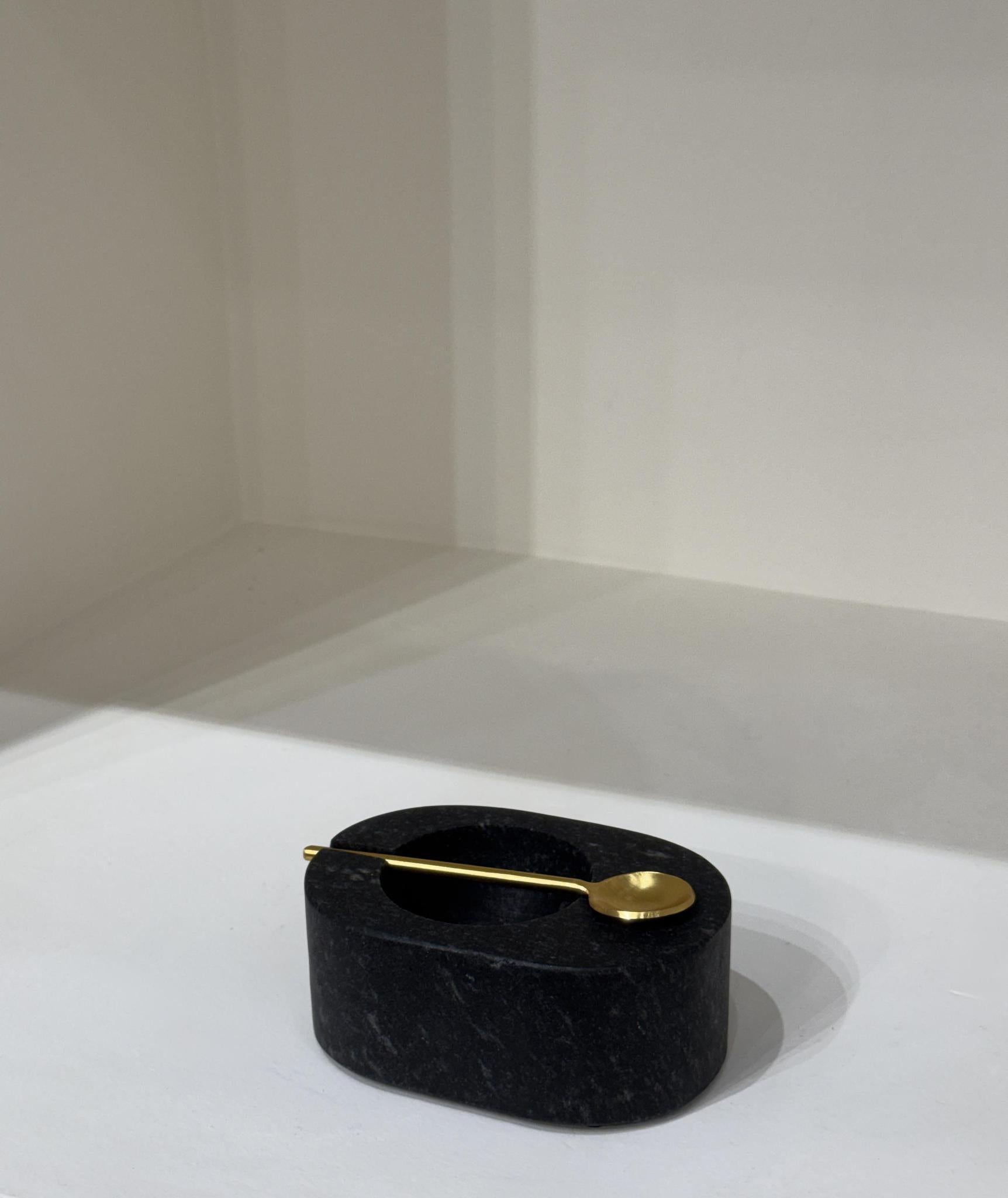 Black marble salt and pepper bowl with spoon
