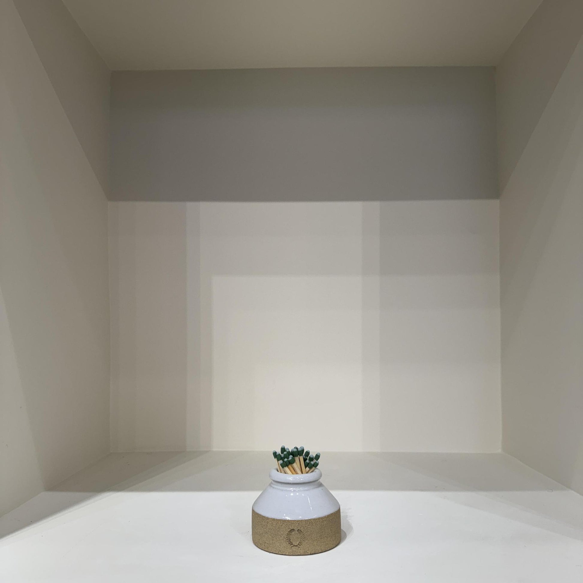 Milk bottle match striker, made of 100% lead & cadmium-free american-made stoneware clay and glaze. Due to the organic nature of the materials and the artisanal process, each piece is unique and may exhibit natural color variations. These subtle differences are a testament to the individuality of each item and add to its charm and character.