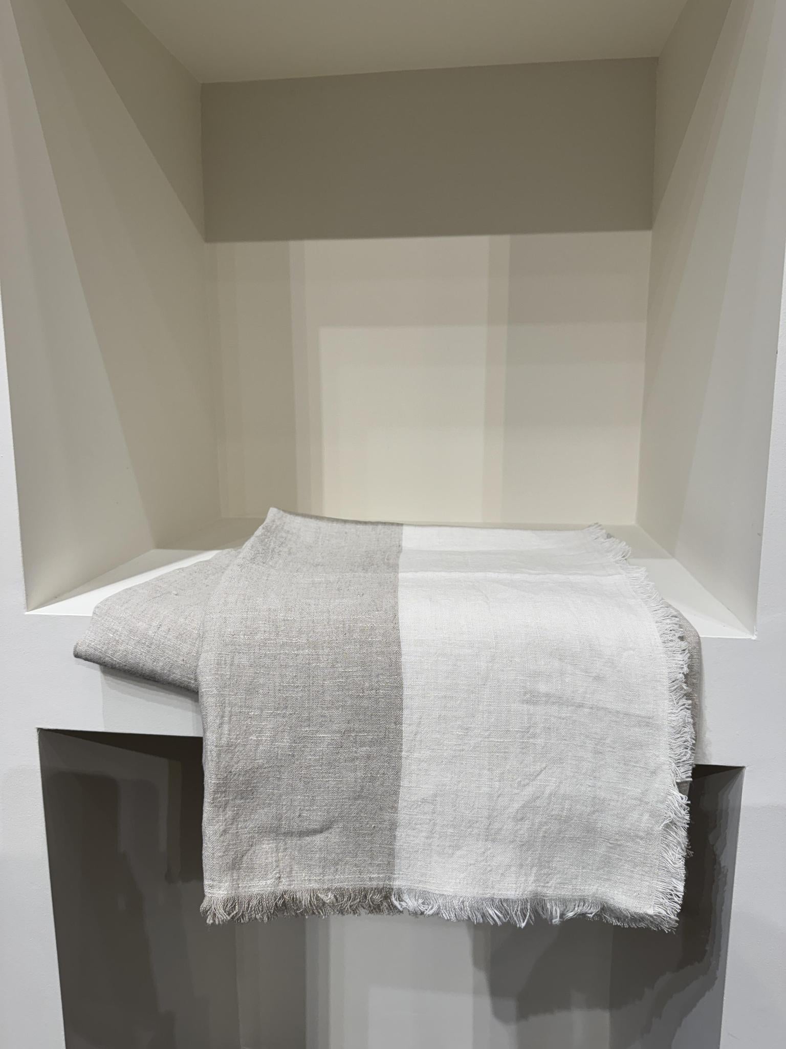 Natural and white throw blanket, 100% european linen